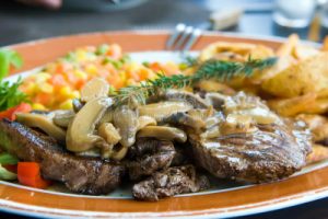 Texas toast Garden salad Herb Roasted red potatoes Fresh veggies Homemade dessert